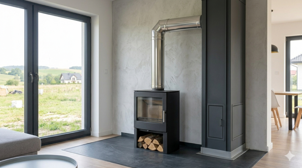 Przy urządzeniach takich jak kominek różnica jest odczuwalna szczególnie mocno. Kominek potrzebuje warunków sprzyjających szybkiemu rozruchowi oraz stabilnemu odprowadzaniu spalin od pierwszych minut pracy. Jeżeli komin w domu parterowym nie został właściwie dopasowany, mogą pojawić się trudności z rozpalaniem, wolniejsze osiąganie parametrów roboczych, a czasem nawet cofanie dymu do wnętrza przy niekorzystnych warunkach zewnętrznych. Przy innych urządzeniach skutki mogą być mniej spektakularne, ale nadal istotne – gorsza stabilność spalania, większa podatność na wychładzanie przewodu i mniej efektywna praca całej instalacji.